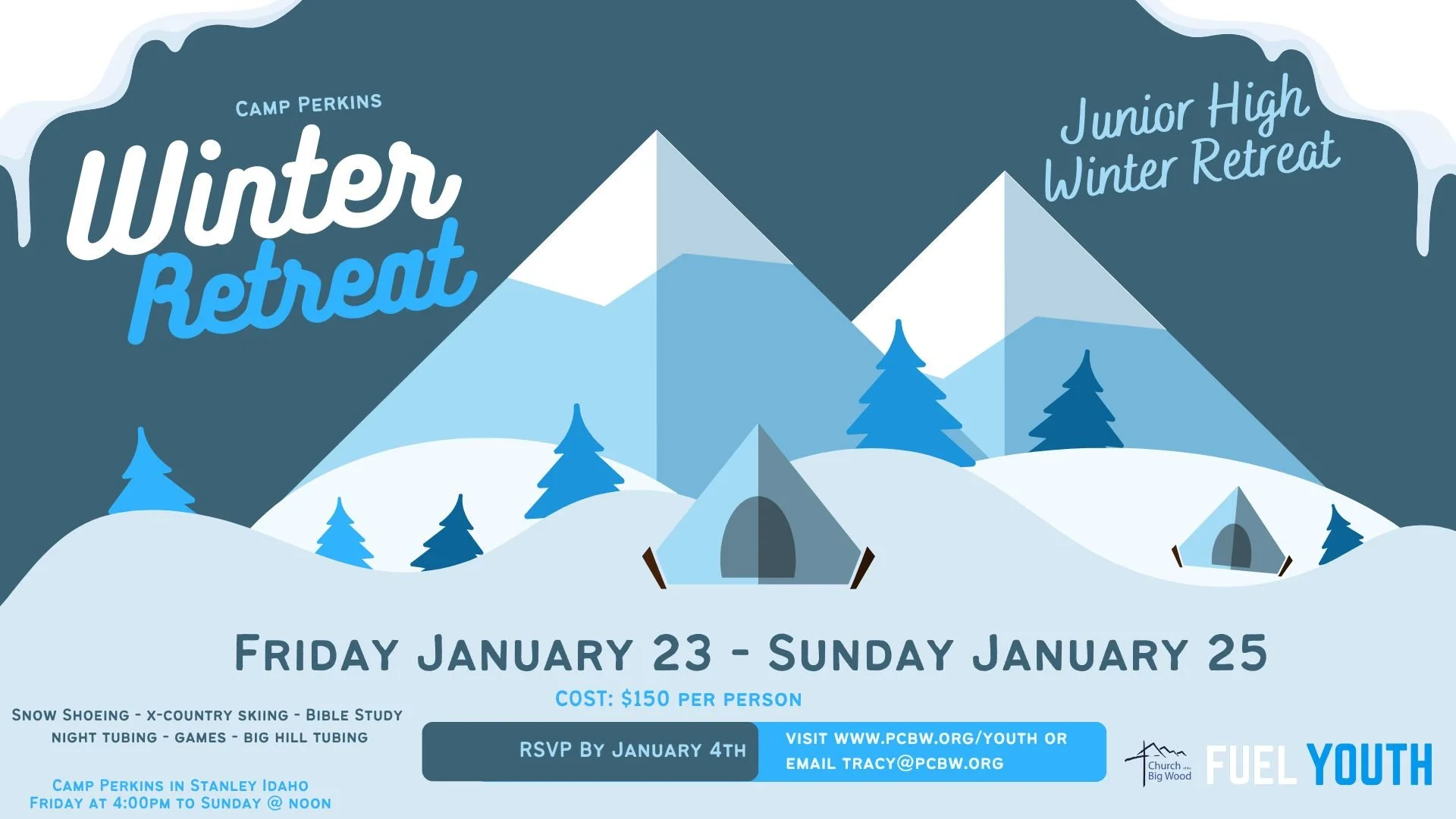 Included in this packet are the forms needed for our Jr High Winter Retreat. Registration deadline (Forms completed and Full payment) due Sunday, January 4th!! No refunds will be given for cancellations within 48 hours of departure. Forms can be emailed to tracy@pcbw.org or dropped off at Fuel Youth Group, the office at Church of the Big Wood located at 100 Saddle Road, The Commons during open hours located at 131 N Main Street or sent by mail to: